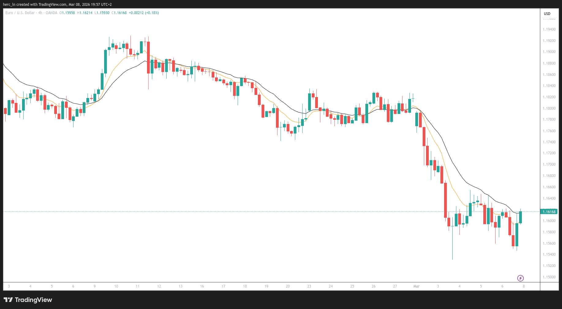 - Bearish Continuation (base case): Retrace to EMA zone → downside toward 1.1550.